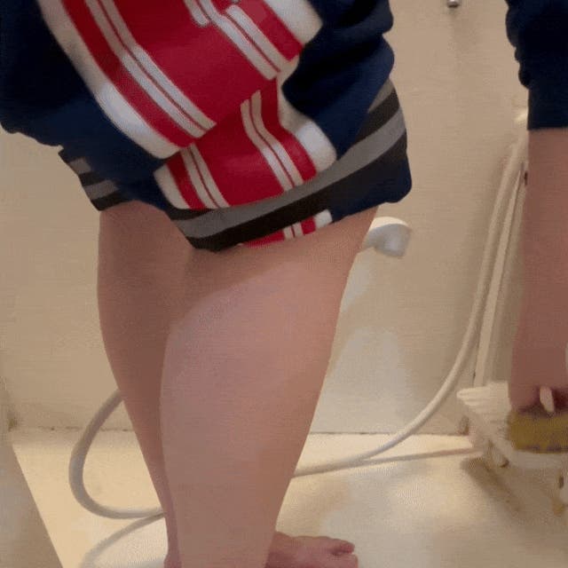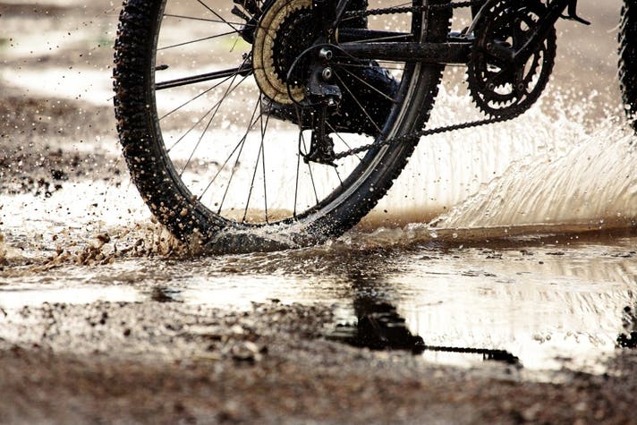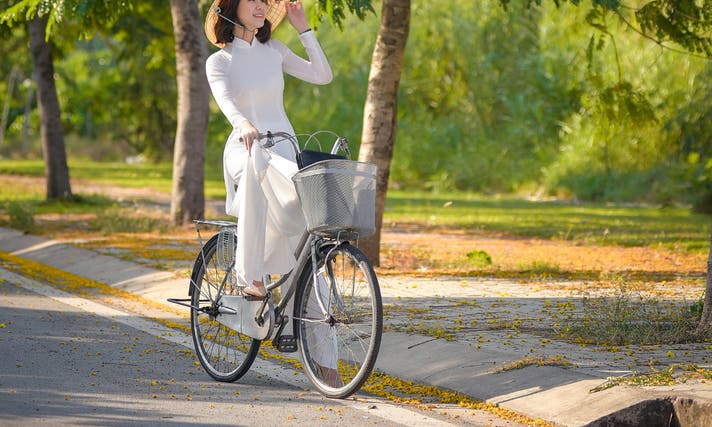 朝の通勤途中、裾が自転車のチェーンに巻き込まれ、転倒。