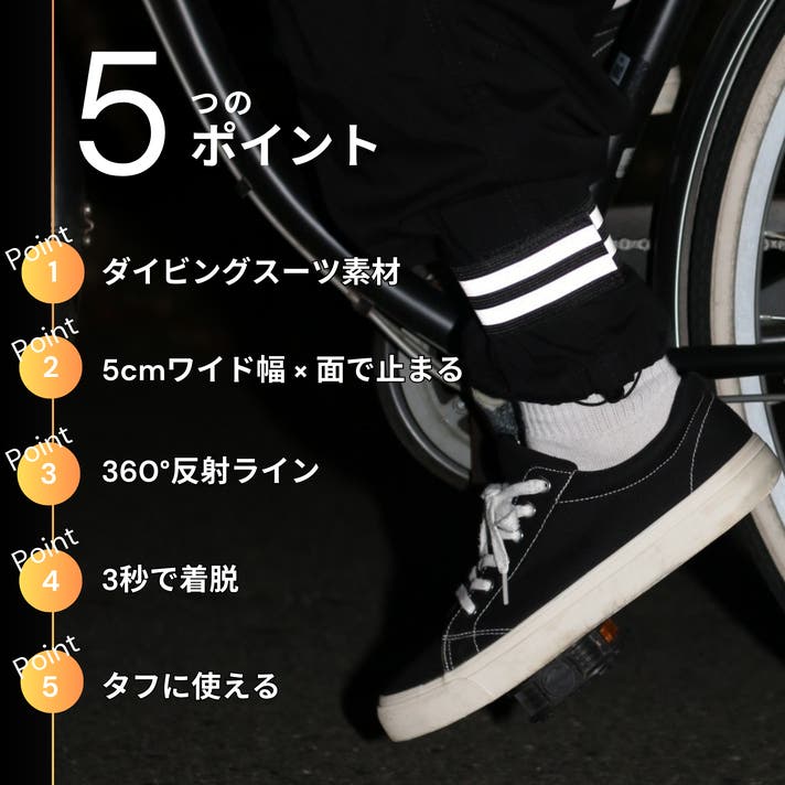 - たった3秒!裾の暴れ・チェーン接触、徹底ガード。「巻く → ピタッ → 動かない」