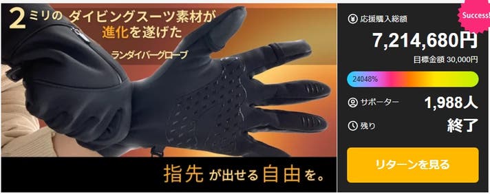 「Makuake(マクアケ)」は、実行者の想いを応援購入によって実現するアタラシイものやサービスのプラットフォームです。このページは、 プロダクトカテゴリの 「【アンコール】「初の快挙」凍える冬に、素手のような操作性を。ランダイバーグローブ」プロジェクト詳細ページです。