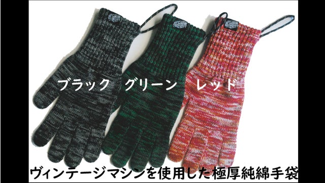2.肉厚な手袋を作ることが出来る-繊維技術が進化し、「薄くても軽くて暖かい」手袋いわゆるハイゲージ手袋の開発が進み、ローゲージの手袋を作ることが出来る編み機が少なくなっています。当手袋は島精機製作所の旧型の編み機でしか作ることが難しい(そのほかの編み機では作ることが非常に困難な)、20番手の太い糸を5~6本編みにして作られています。肉厚なため、耐熱となりリストバンドの効果も作り出すことが出来ます。