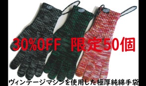 50双限定 肌に優しい 極厚リストバンド付き純綿手袋 杢モデル