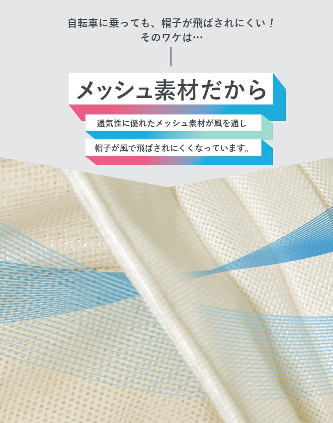 - 風が強くても、もう心配いらない。ムレずに快適、夏の毎日を支える帽子。