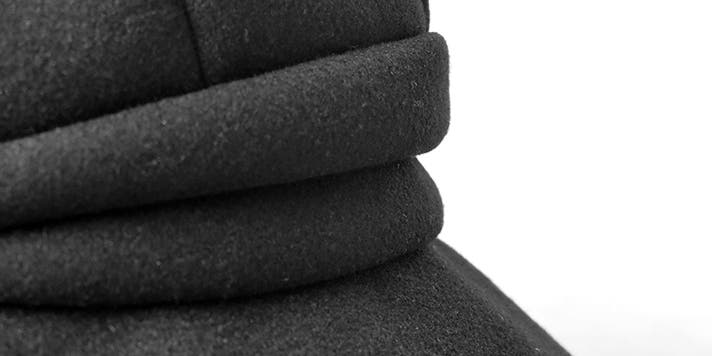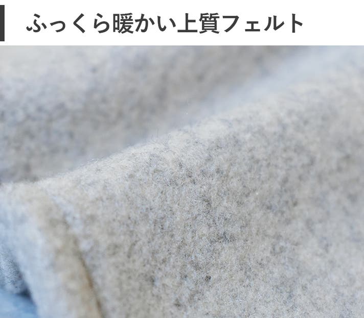 フェルト素材は、繊維がぎゅっと密に絡み合っているため、しっかりと空気を抱え込み、 あたたかさを逃さない のが大きな魅力です。やわらかさの中に程よいコシがあるので、立体的なフォルムを美しく保ちやすく、かぶったときのシルエットもきれいに決まります。また、布地のように端がほつれる心配が少なく、すっきりとした仕上がりになるのも特徴です。さらに、マットで上質感のある質感が秋冬らしい雰囲気を引き立て、装い全体に落ち着きと季節感を添えてくれます。