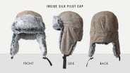 イヤーフラップは下ろしても上げてもOK。寒い日には耳まで包み込む暖かさを、外出時には上げてすっきり見せることもできます。スキーやスノーボード、冬の散歩や通勤・通学など、真冬の屋外での活動にも活躍する、防寒対策にぴったりのパイロットキャップです。