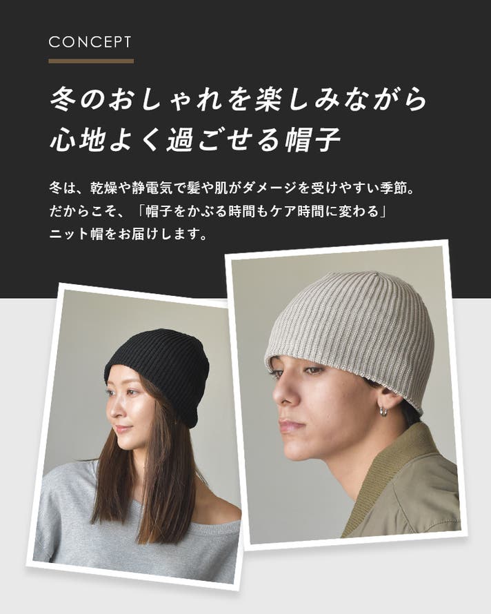 このニット帽は、単なるファッションアイテムではありません。「なんとなく」ではなく「理由があって選びたくなる」帽子。その小さな違いが、毎日の気分や髪へのいたわりに大きな差を生むと信じています。