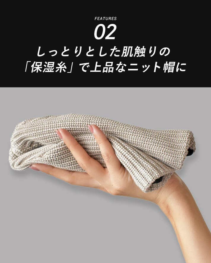 うるおいをまとうようななめらかな質感で、ちくちく感が少なく長時間かぶっていても快適です。
