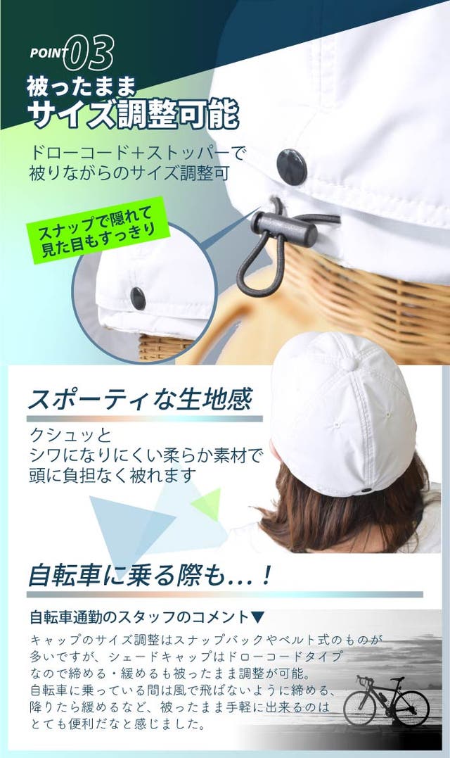 - クイックに着用、サイズ調整できる!シェードは着脱可能