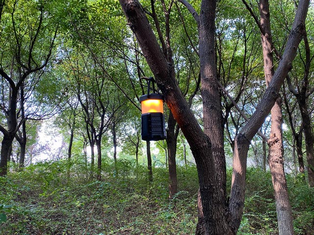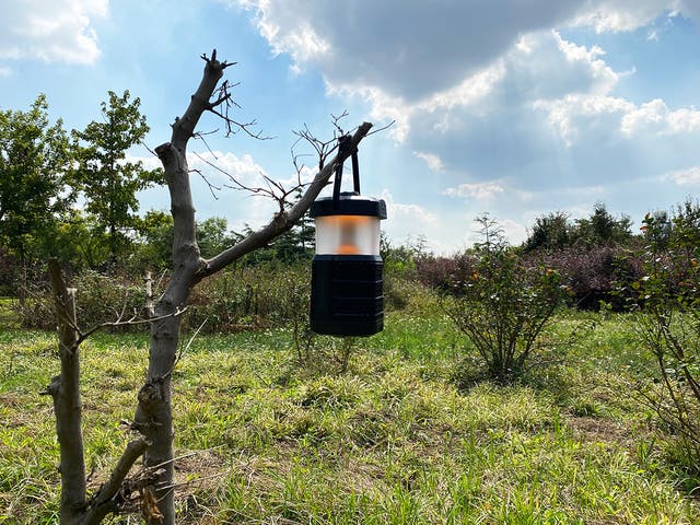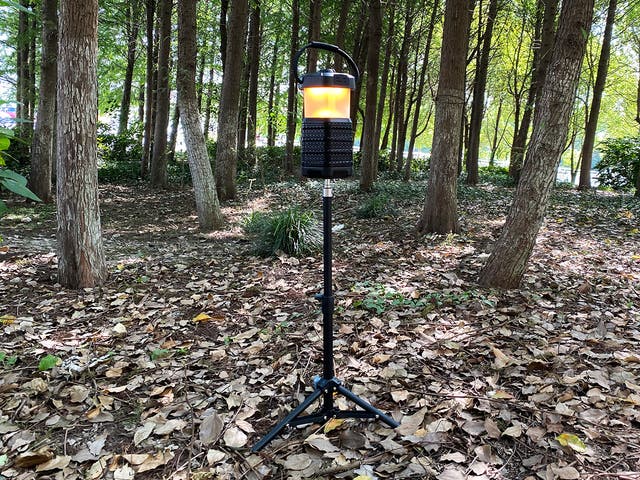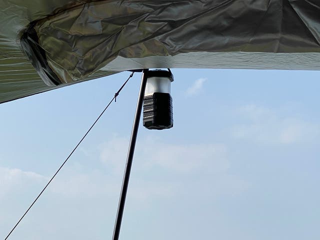 木に掛けたり、ランタンスタンドに掛けたり、三脚に取り付けたりなどさまざまな場所で利用可能です。