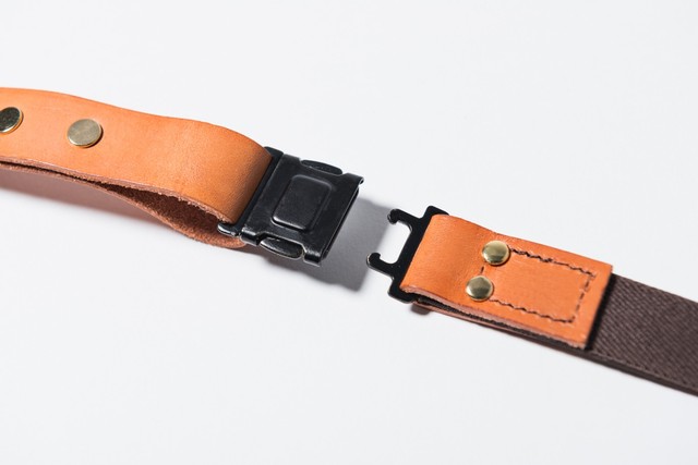 着脱動作だけでなく、ベルト調整もカジュアルに行えるよう、国内メーカーの軽量パーツをベルトの長さを調整する箇所に使用しました。軽量ではありますが、強度や柔軟性に優れたパーツです。
