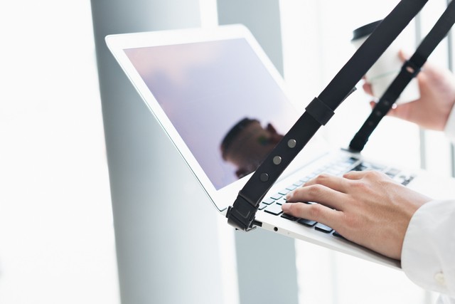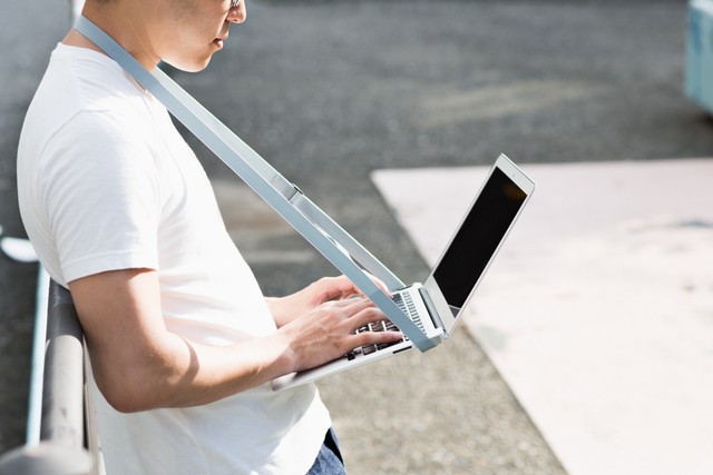 前例のない製品になります。過度に荷重をかける、またMacを閉じた状態でカバンの様に首や肩にかける等の利用方法は本体破損および落下破損事故の要因になる場合がございます。ご使用の際はくれぐれもご注意下さい。