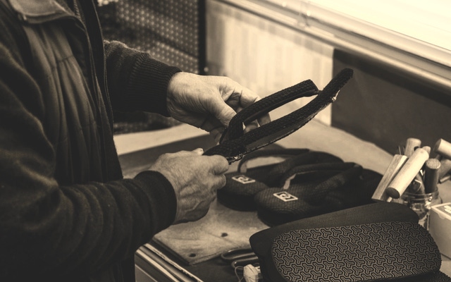 奈良県で長年雪駄を作り続ける職人による「熟練技術」の手作業により、ひとつひとつ丁寧に生産いたします。