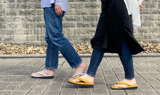 雪駄の顔をもち、日本の伝統文化を詰めながらも、アスファルト道が街を支配している現代でも快適で歩きやすい雪駄サンダルが出来ました。
