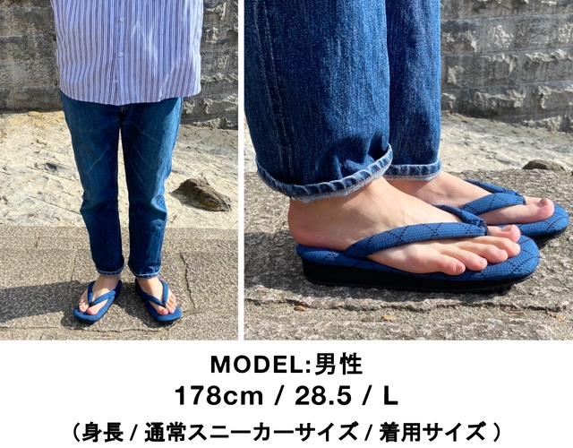 あくまで履き方やサイズ感はお好みでお選びいただきたいのですが、ちょっとした豆知識として、雪駄は小指とかかとを出して履くのが粋でカッコいい履き方と言われています。