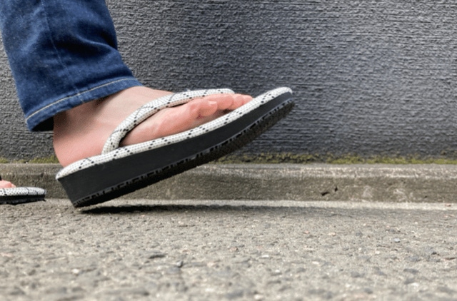 粋な履き方とされているのは、指を鼻緒の奥までしっかり押し込むのではなく、指の間と鼻緒部分に少し距離を置いて履くと粋な履き方と同時に、指の間の痛みも軽減されます。