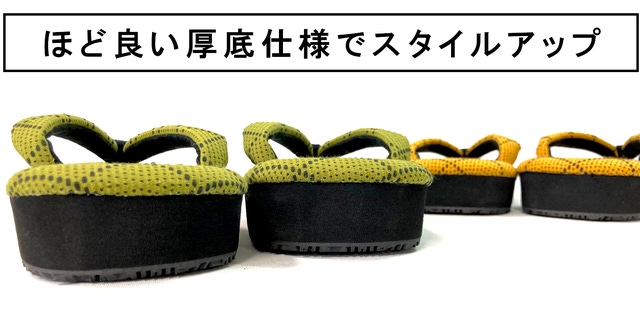 雪駄はソール部分が薄く平たいものが多いですが、ほどよい厚底(約3.5cm)デザインでスタイルアップ!
