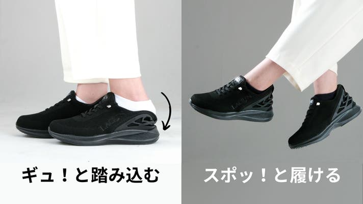 LAQUNは「カカトが柔らかく」踏めるから、着脱時の安定感が違います!
