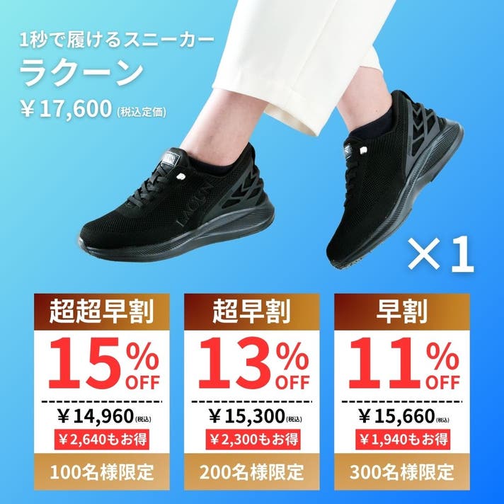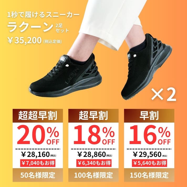 - 【累計5,000万円突破】極上の履き心地。1秒で履けるスニーカー 「ラクーン」シリーズ最新作!