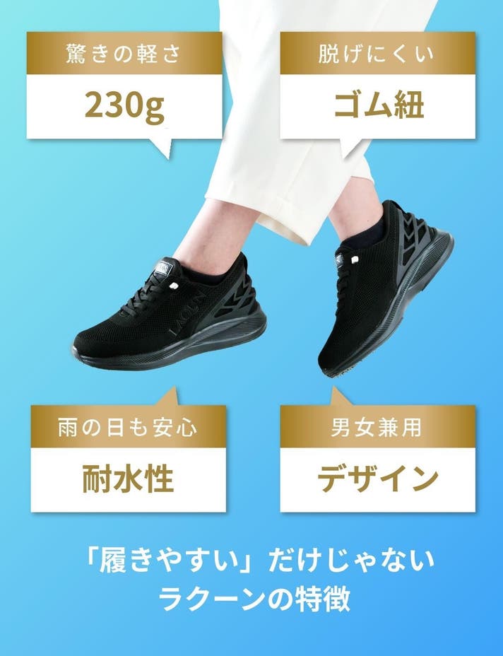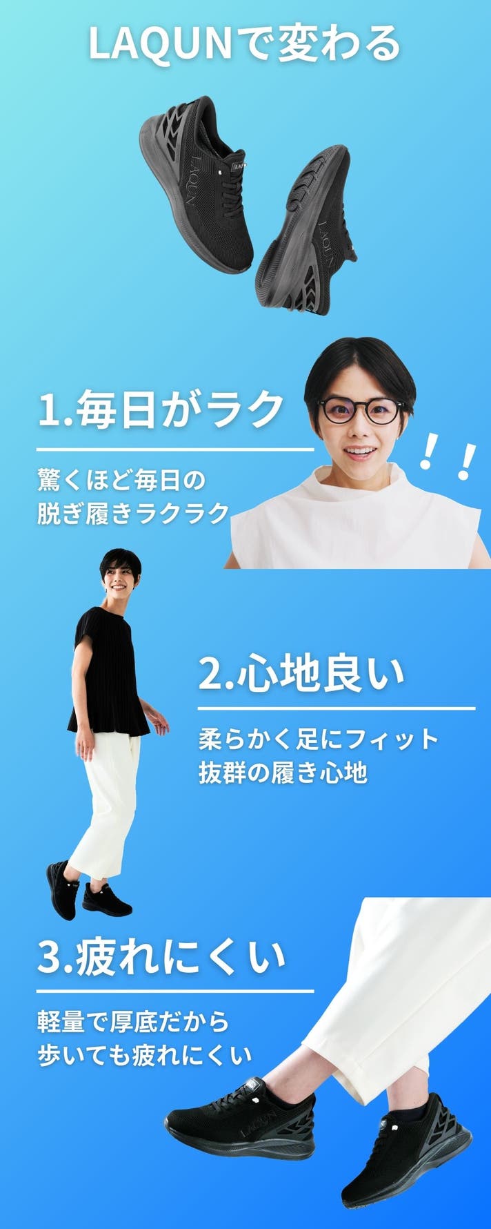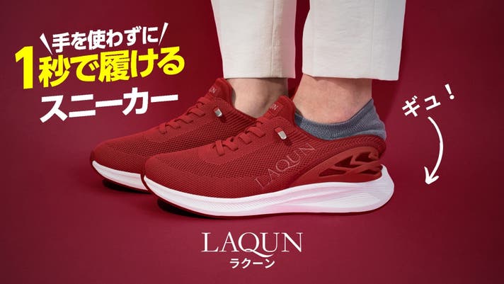 『LAQUN』は靴の脱ぎ履きを変える、革新的スニーカー、毎日を劇的に楽にします!