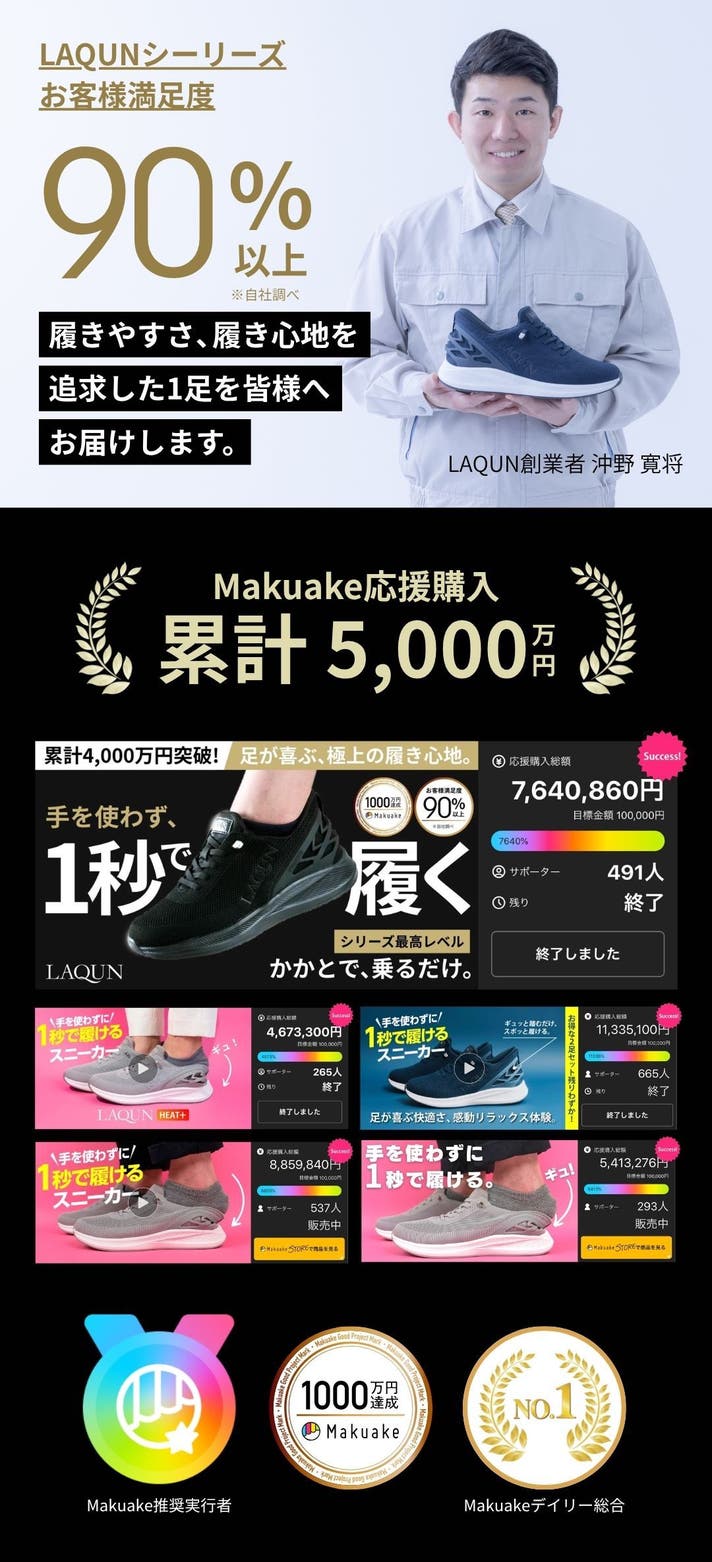 2023年マクアケ初登場、1秒で履けるスニーカー「LAQUN」は多くの方からご好評いただいております。Makuake第6弾、さらに進化した最新モデルが登場です!