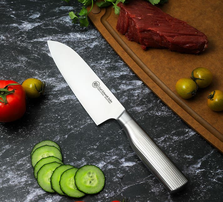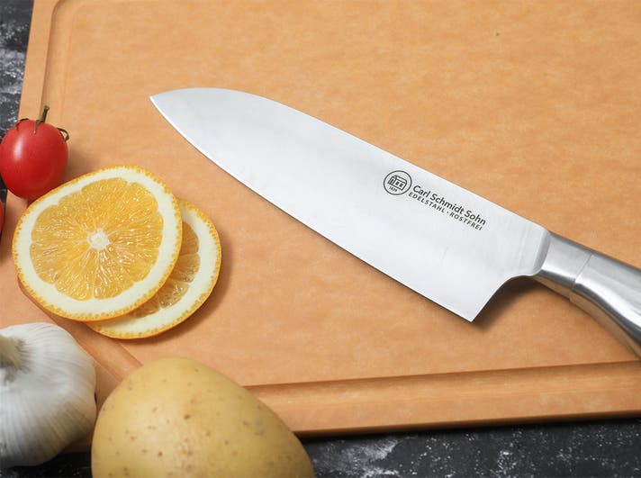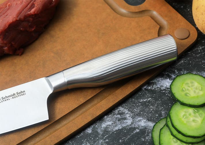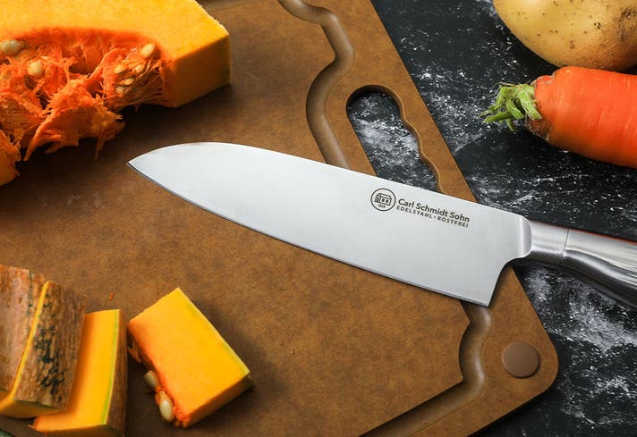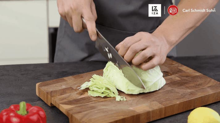 日本と違い、ドイツでは遠い昔から肉やカボチャのような硬い物から柔らかい魚の身、潰れやすいトマトまで様々な食材を切る習慣があり、どんな食材でも切りやすく耐久性の高い包丁が求められてきました。
