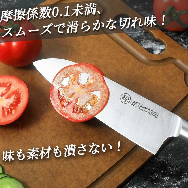 - 摩擦係数0.1未満でどんな食材もスムーズに簡単に切れる!1829年創業の歴史と実績のドイツ包丁