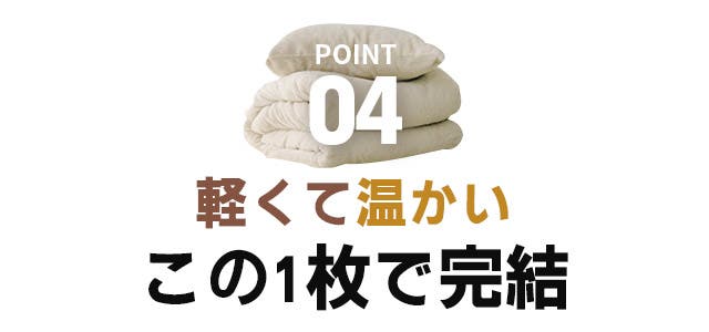 高度な技術を採用することで、従来のマイクロファイバー布団よりも軽くて薄い仕上がりです。厚い布団だけが温かいという既存の概念を覆し、薄くても高い保温性を実現しています。真冬であっても、この一枚だけで十分な暖かさを提供します。