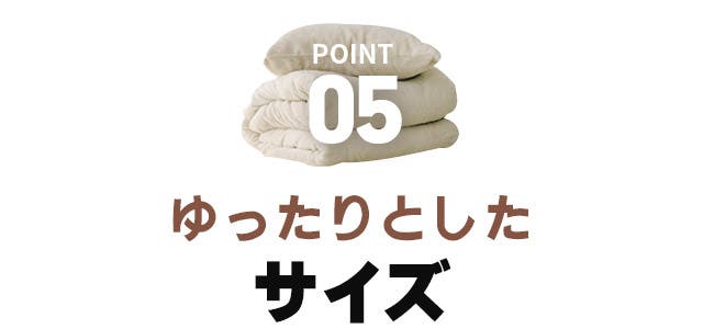 市販の一般的な掛け布団のサイズよりも、ゆとりのある大きめサイズです。