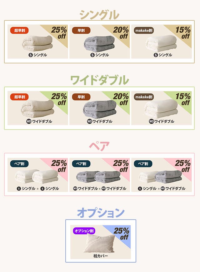 ※本コースはシングルとワイドダブルを購入方にのみ該当します。