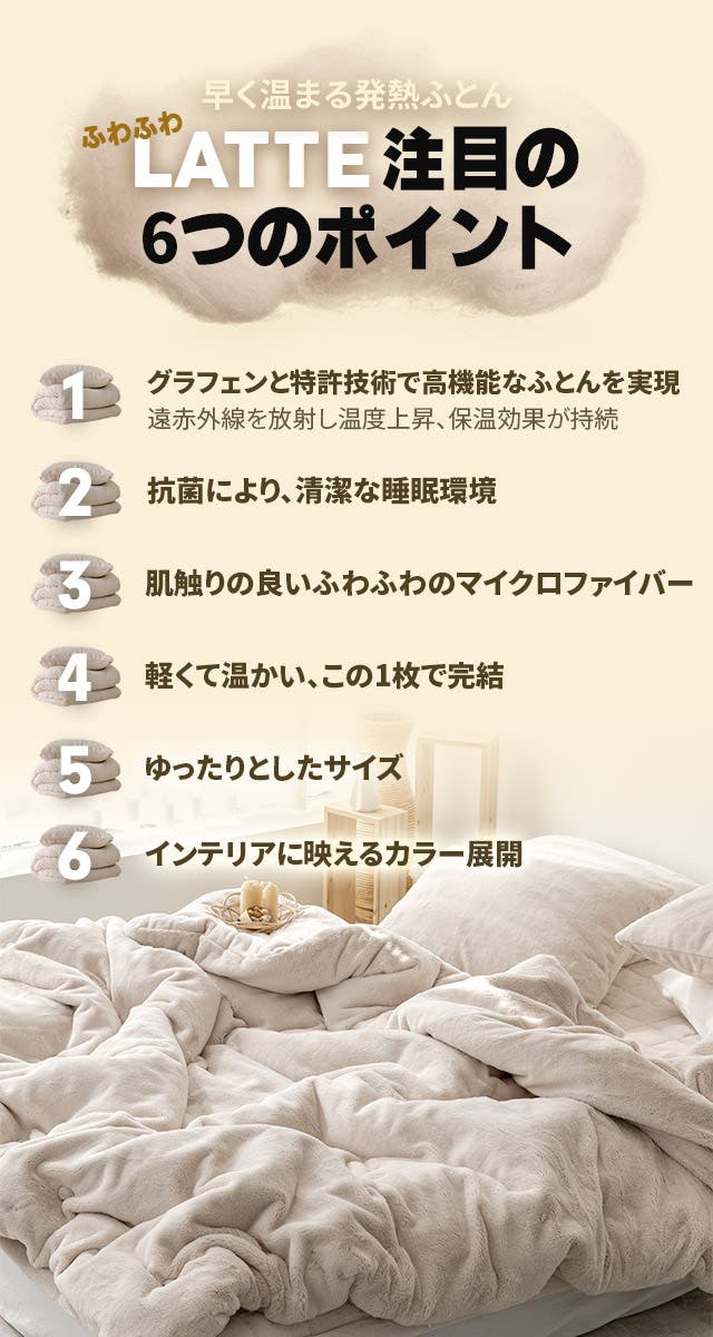 【早割】発熱布団 LATTE ワイドダブル 1枚