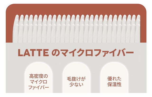 10mmのマイクロファイバーを使用。密なマイクロファイバーで作られており、暖かさを閉じ込めることで保温性を高めています。高密度のため毛抜けが少ないです。
