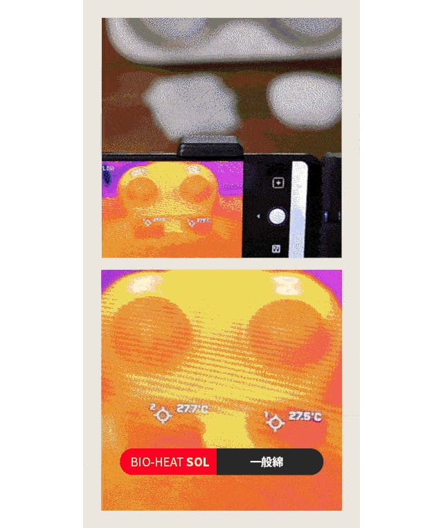 G.CLO社で開発したグラフェン素材のBio Heat Solは、熱を吸収して、遠赤外線の熱を放射する機能をもっていて、特許や各種テストでも検証された素材だったので、採用することになりました。また、グラフェンが吸収した熱を保温するために、Porafil素材でレイヤーを構成しました。