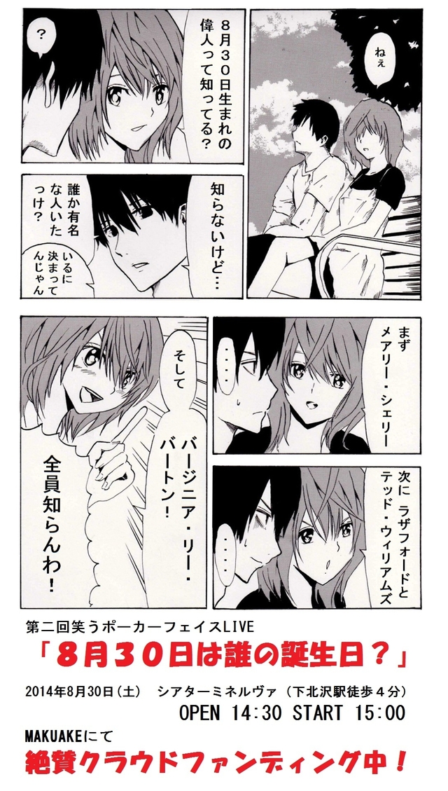 2014年8月30日(土)には、『第二回 笑うポーカーフェイスLIVE』が開催されます。