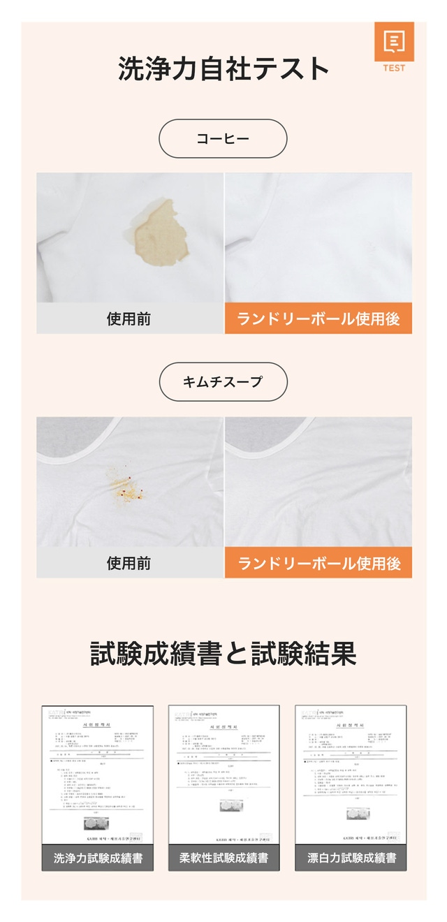 国家認定機関にて洗浄力、柔軟性、漂白力などのテストを完了した製品です。