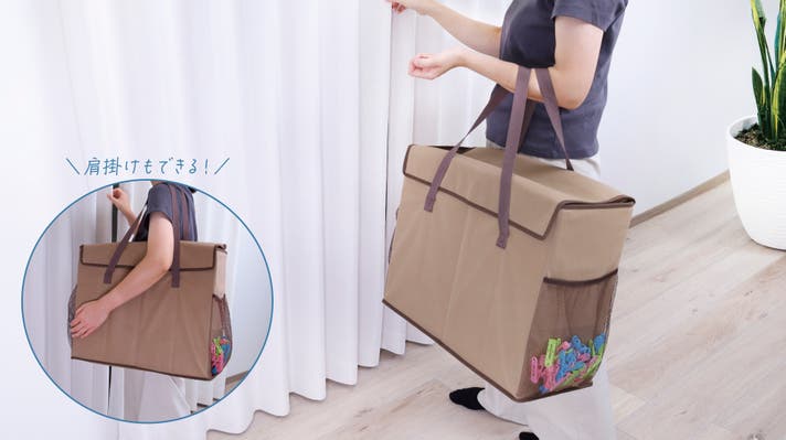 洗濯かごを両手で持っても、洗濯用品をまとめて持ち運びできるので便利です。