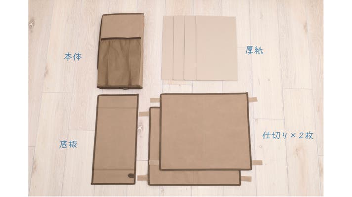 本体:ポリプロピレン(仕切り・底板・バイアス・持ち手)