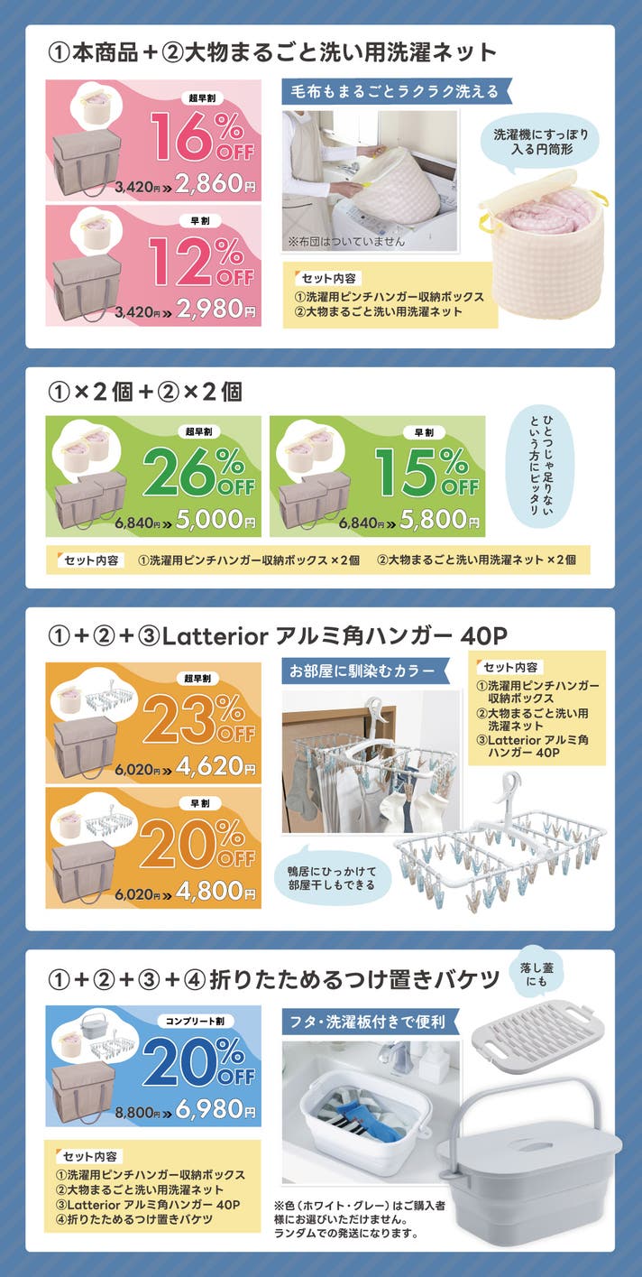 【コンプリート割】本商品1個+洗濯ネット1個+角ハンガー1個+バケツ1個