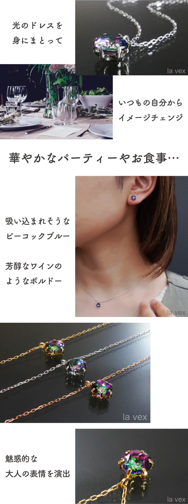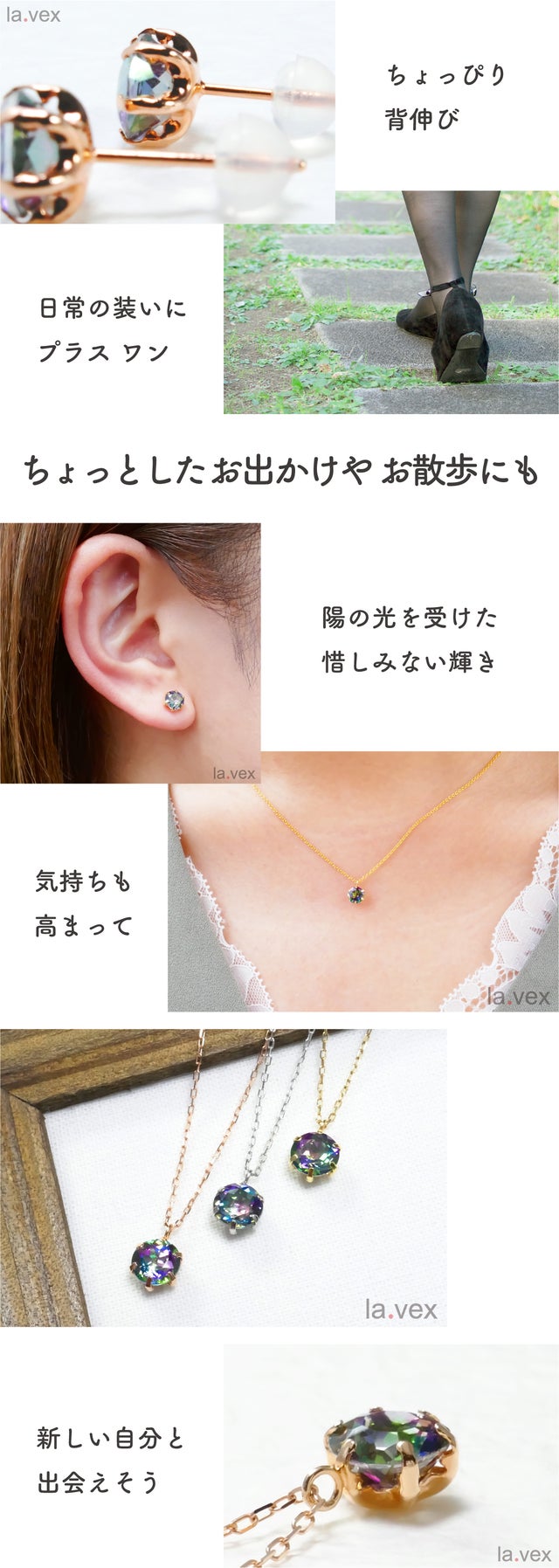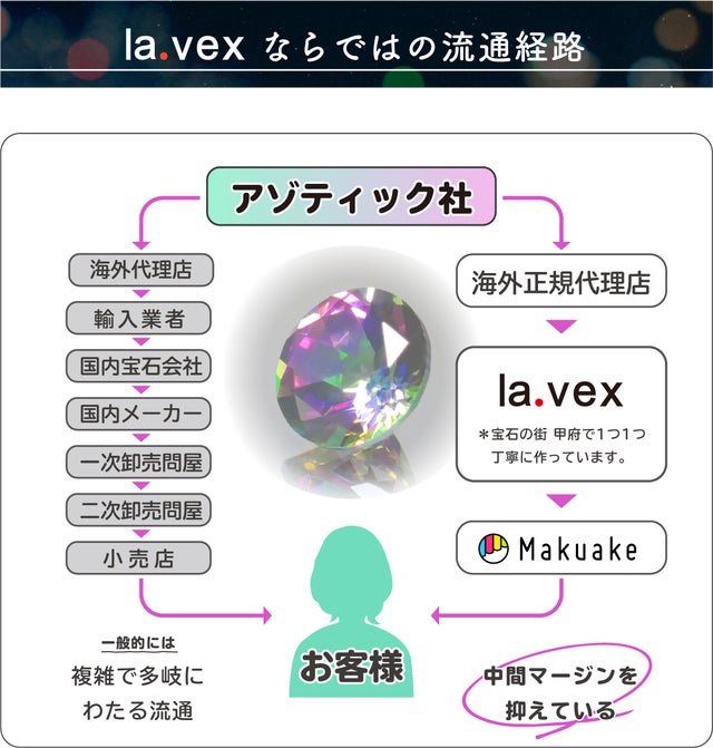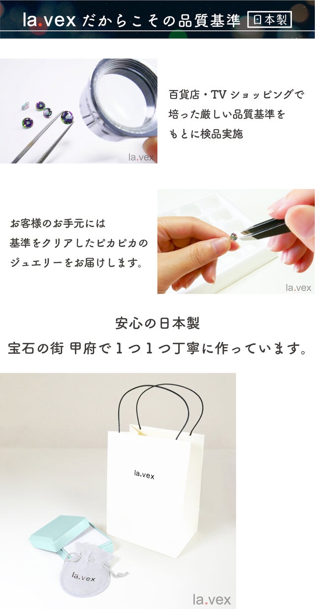 la.vexには「あっと言わせる・驚かせる・感動させる」と言う意味合いが込められています。それはデザインであり品質でありプライスであり、ジュエリーを通して皆様に笑顔と喜びをお届けしたいと思っています(=^・^=)