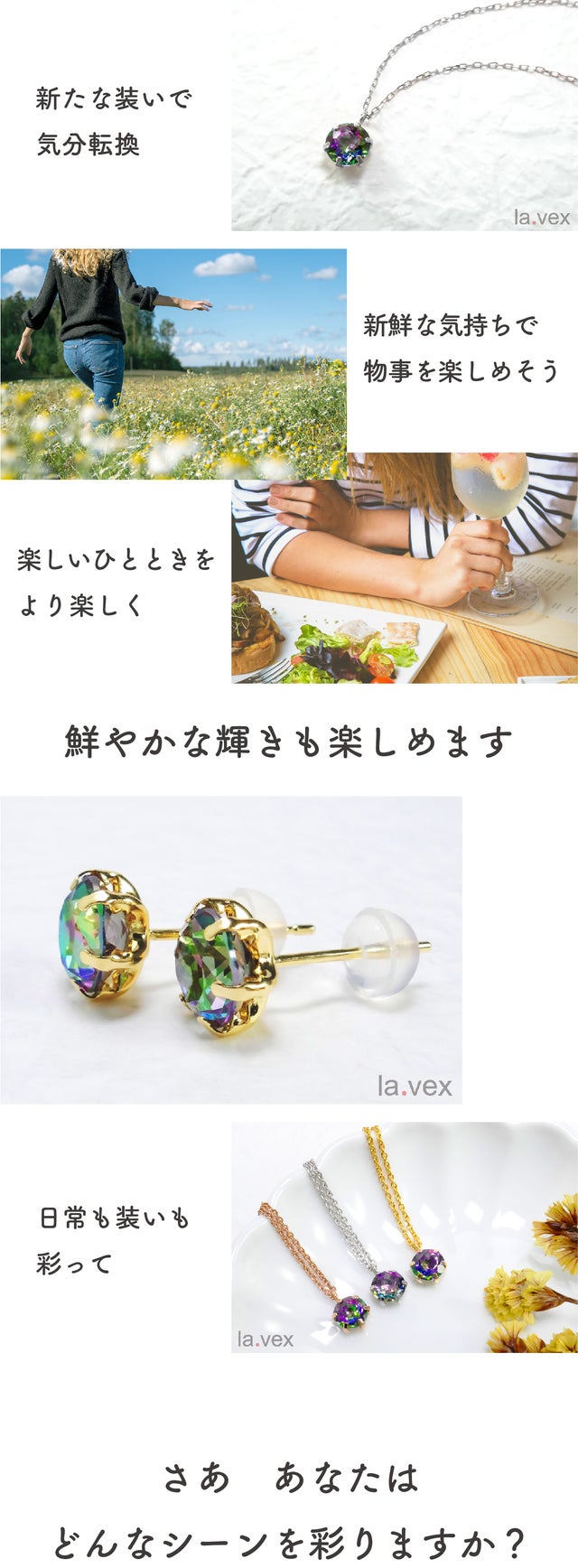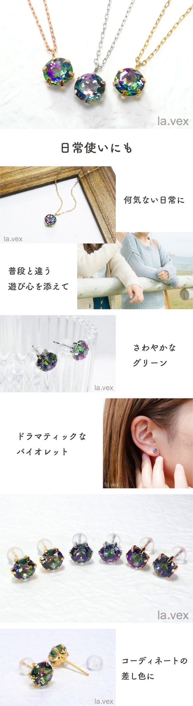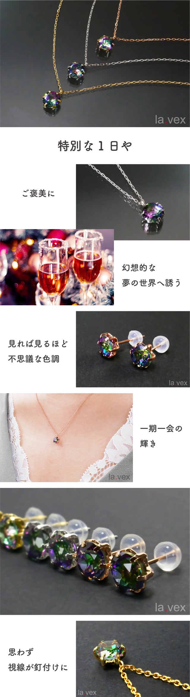la.vexには「あっと言わせる・驚かせる・感動させる」と言う意味合いが込められています。それはデザインであり品質でありプライスであり、ジュエリーを通して皆様に笑顔と喜びをお届けしたいと思っています(=^・^=)
