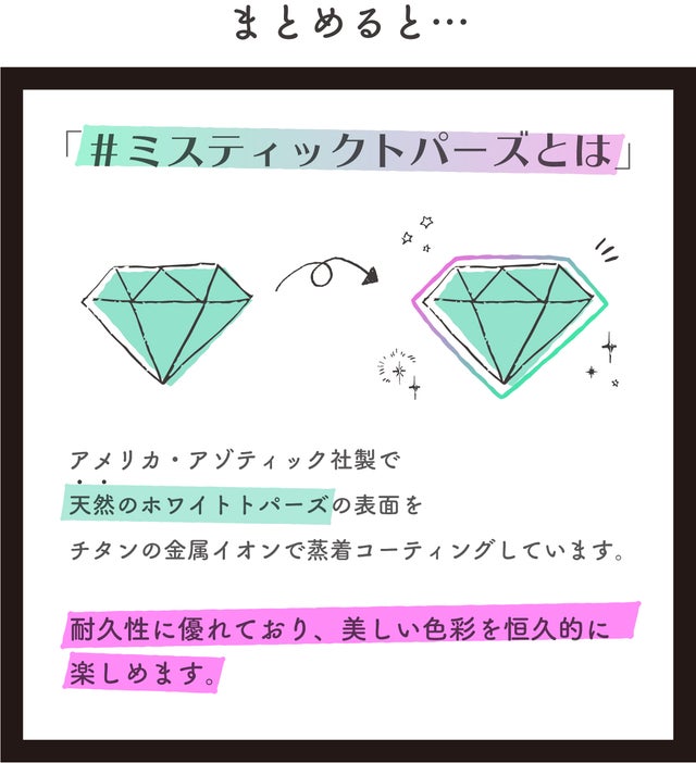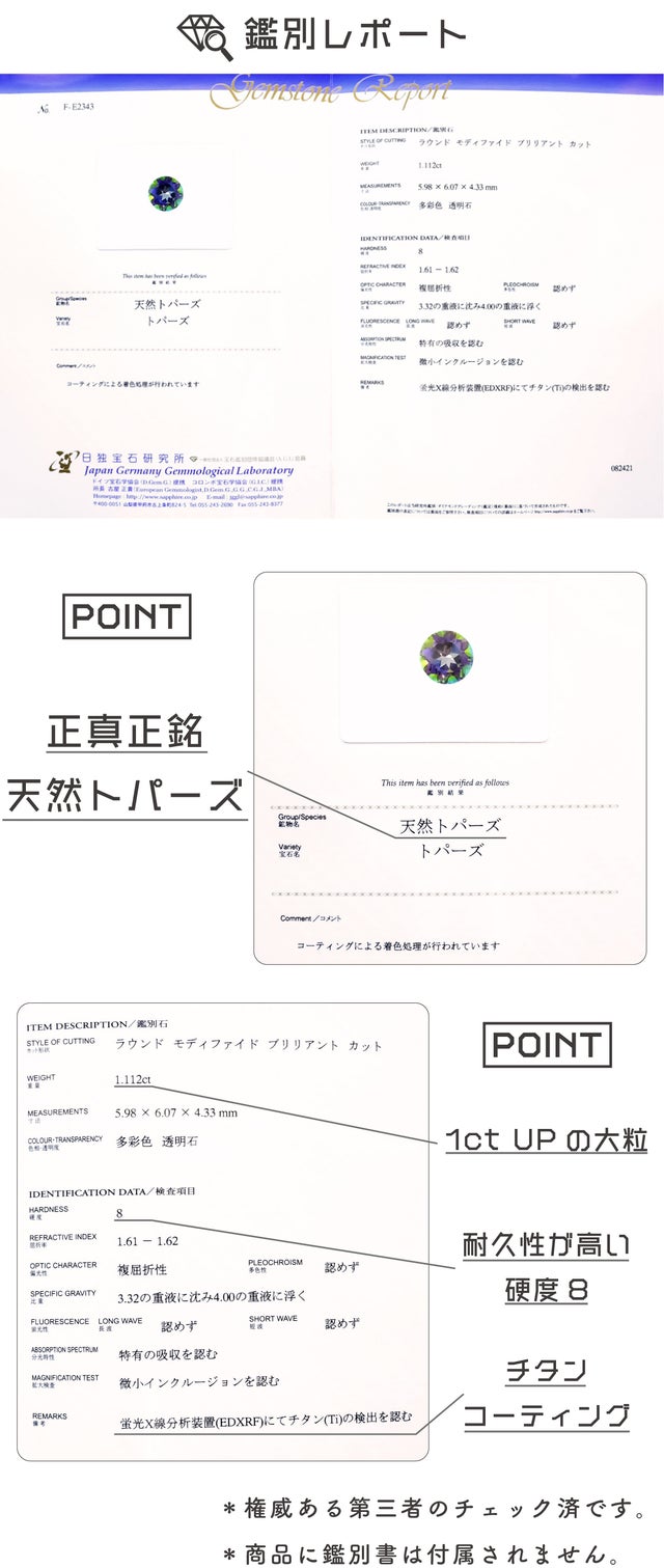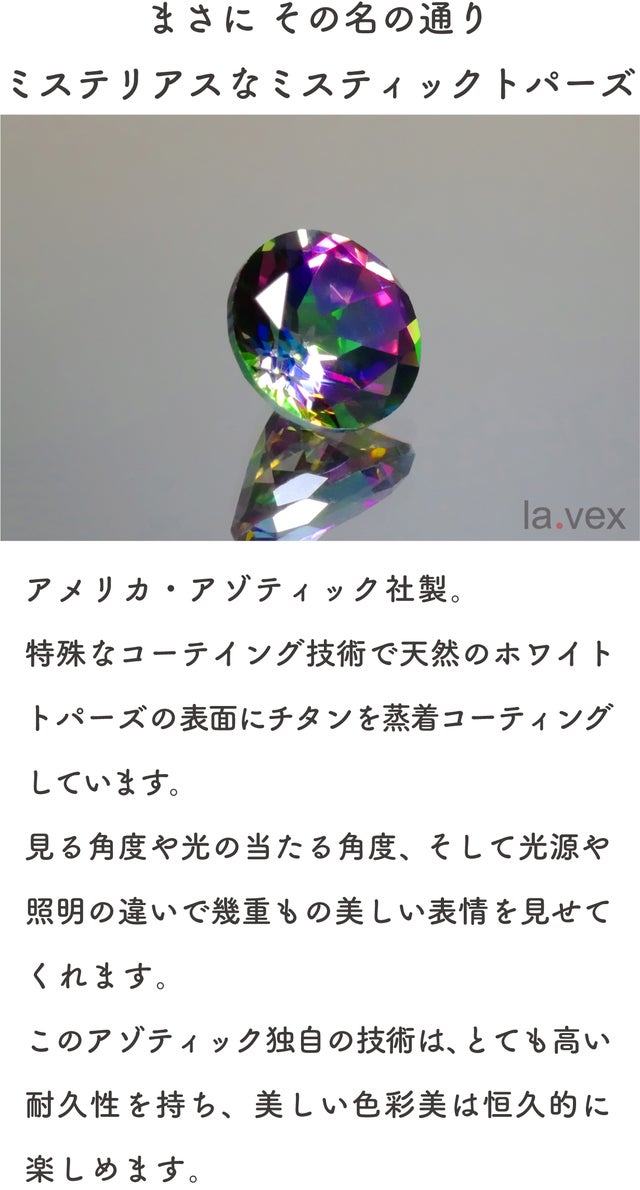 天然のホワイトトパーズに特殊なコーティングを施し、今までにない芸術的な色彩美を放ち続けるトパーズです。