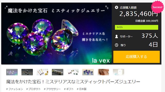 山梨県のジュエリーメーカー株式会社LAVEXです。 百貨店・TV・カタログショッピングで全国展開しています。前回ミスティックトパーズ プロジェクトは無事成功しました。みなさま誠にありがとうございました。