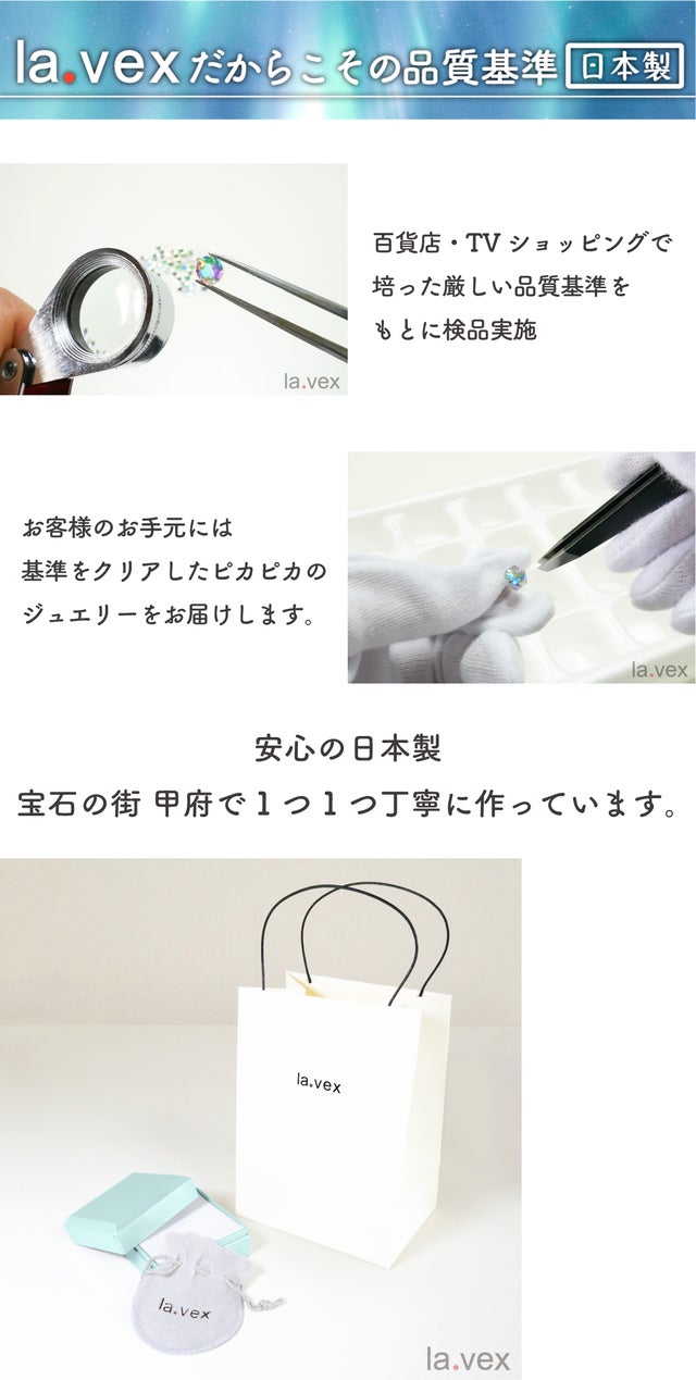 la.vexには「あっと言わせる・驚かせる・感動させる」と言う意味合いが込められています。それはデザインであり品質でありプライスであり、ジュエリーを通して皆様に笑顔と喜びをお届けしたいと思っています(=^・^=)