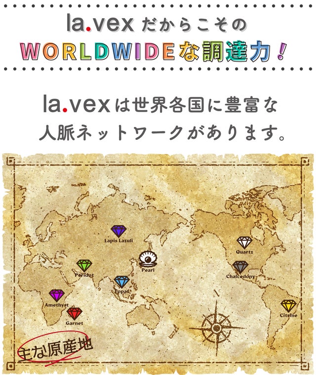 la.vexは世界各国に豊富な人脈ネットワークを持ち、美しい天然石をリーズナブルに買い付けできます。