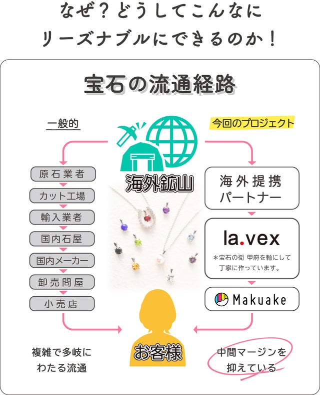 山梨県のジュエリーメーカー株式会社LAVEXです。 百貨店・TV・カタログショッピングで全国展開しています。これまで4つのプロジェクトが無事成功しました。みなさま誠にありがとうございました。
