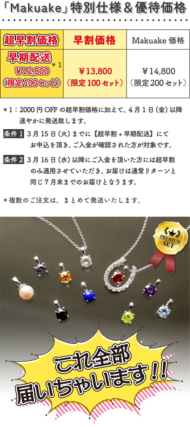※条件1:3月15日(火)までに【超早割+早期配送】にてお申込を頂き、ご入金が確認された方が対象です。