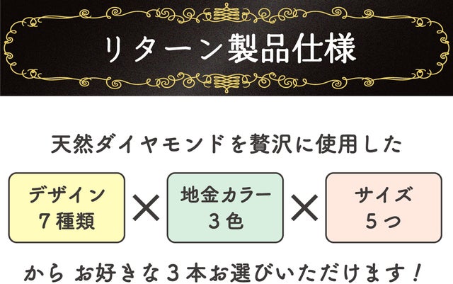 ★リターン質問にて、3本のリングそれぞれ下記項目をお答えください。
