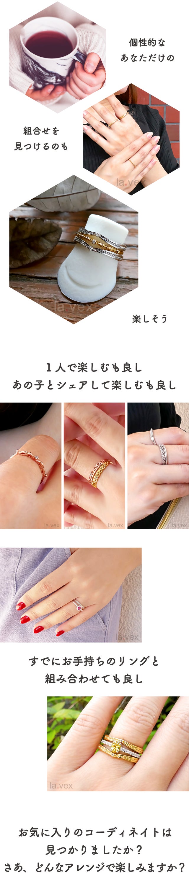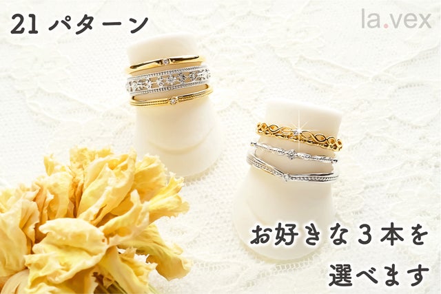 - アレンジ自由自在 21パターンのリングからお好きな3本をお選びいただけます!
