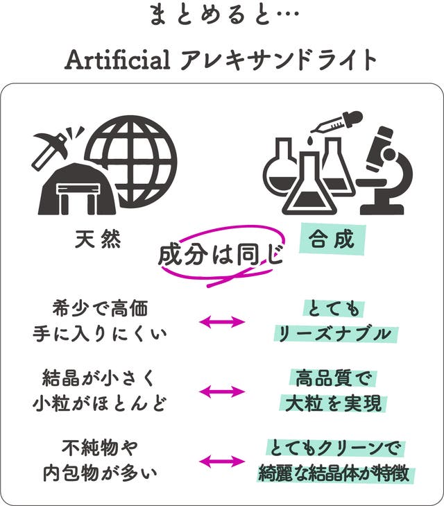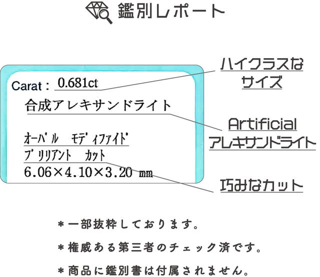 - 天然では極めて入手困難なサイズの【アレキサンドライト】を人間の英知を結集して高品質で再現!