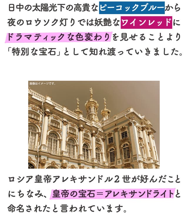 世界有数の鉱山があるウラル山脈ではエメラルドが産出していたため、初めは高品質なエメラルドであると思われていました。