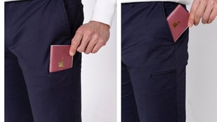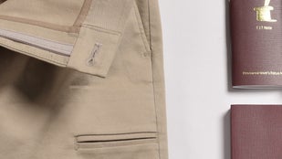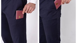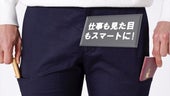 考え出されたのが「メモウェアF.I.T.パンツ」。腿の部分にある専用ポケットが特徴。右ポケットにペン、左ポケットにメモが収納できます。コンパクトで見た目もスマート。もちろん、通常のポケットも前後左右に4か所あります。