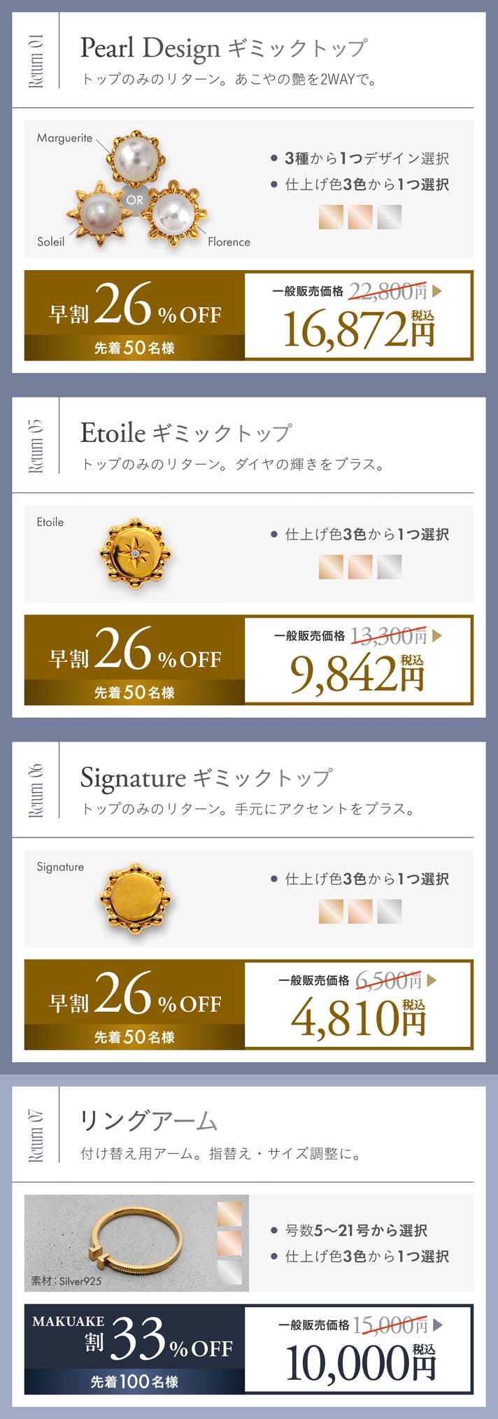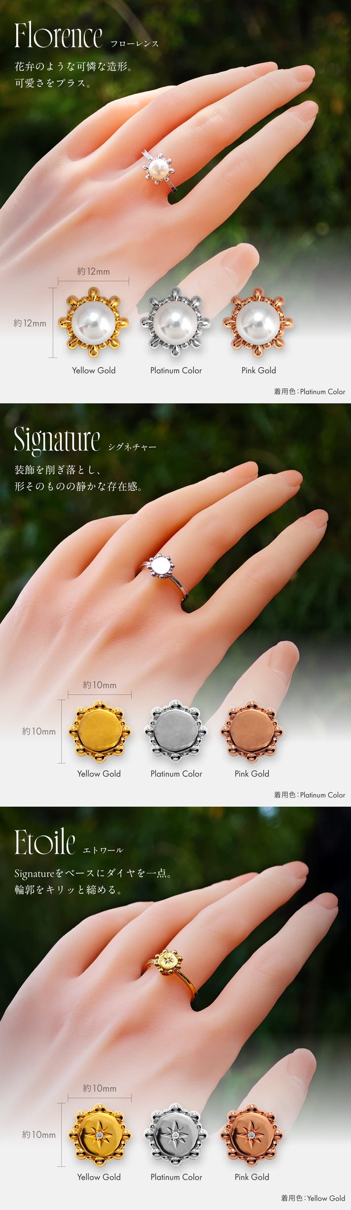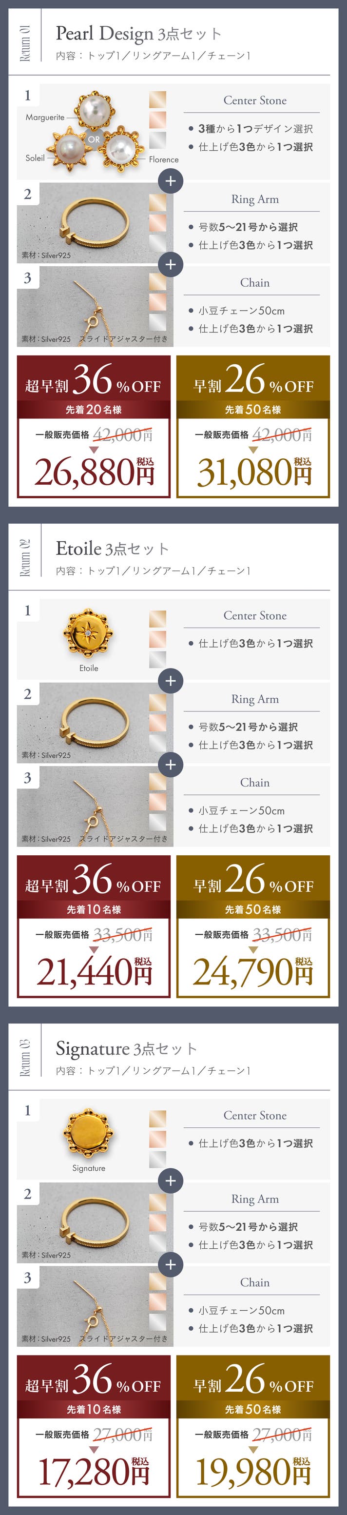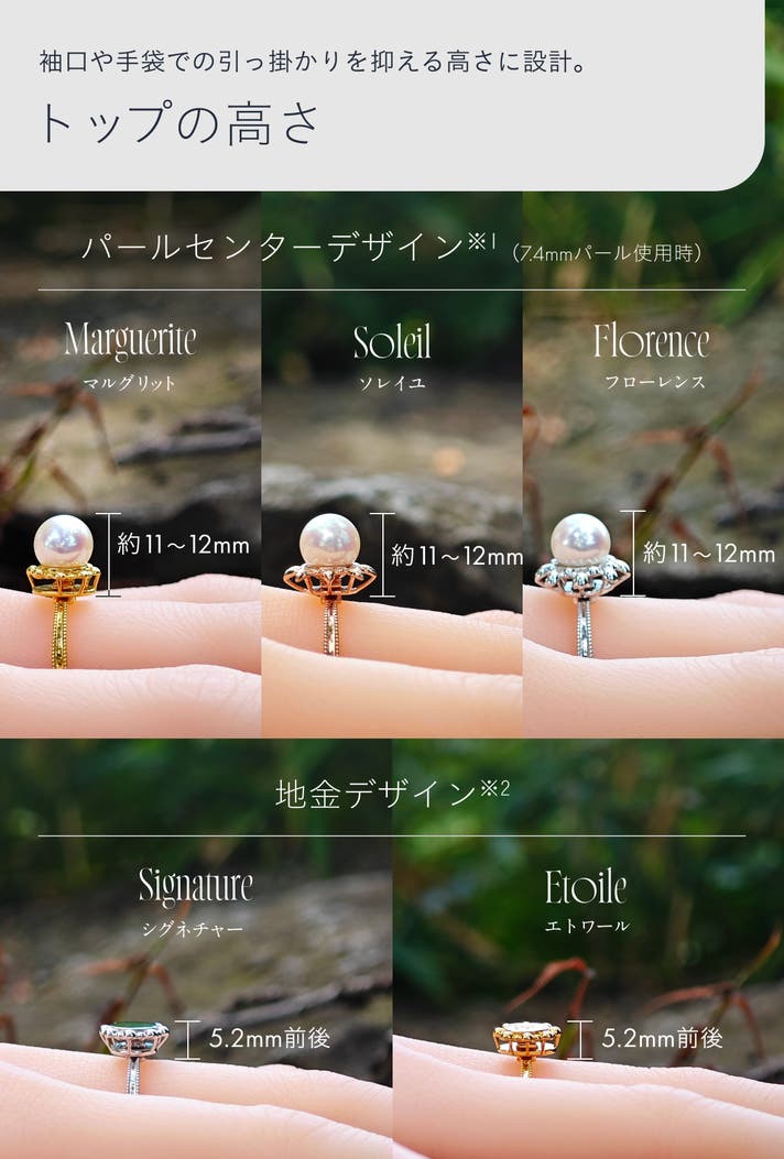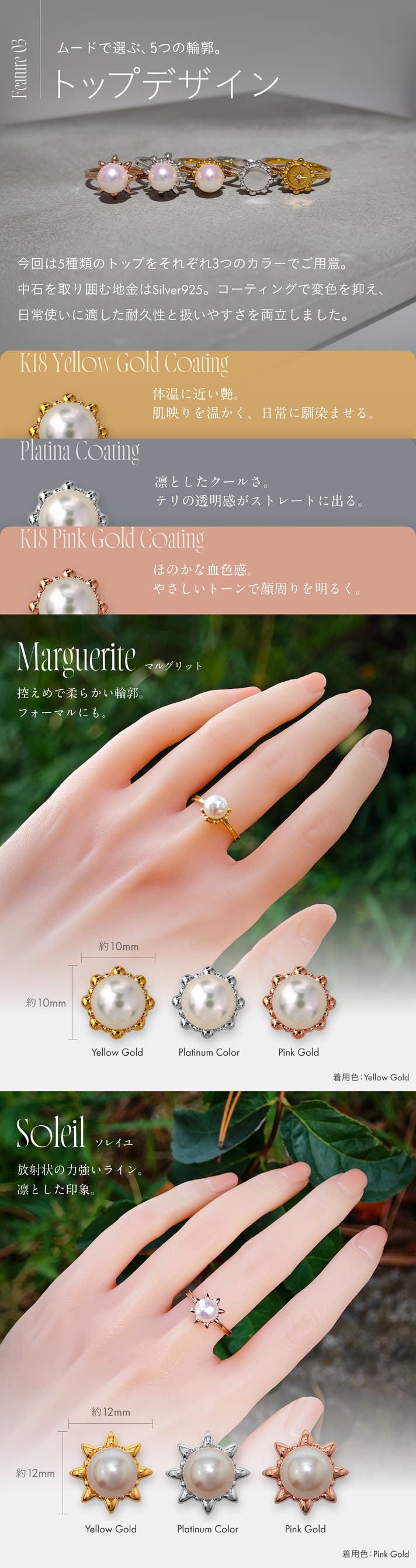 (Marguerite・Soleil・Florenceのパール3種デザインのうちから1つをお選びいただけます)